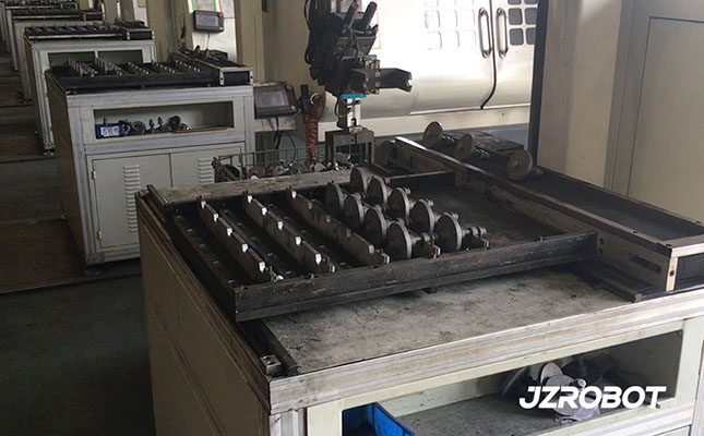 數(shù)控車床一拖二機(jī)械手連線自動(dòng)上下料,視頻來自捷眾機(jī)器人。桁架機(jī)械手一般安裝在機(jī)床上方,軌跡單一,占用空間小,能夠?qū)崿F(xiàn)一對(duì)一、一對(duì)二或多機(jī)并聯(lián)。13